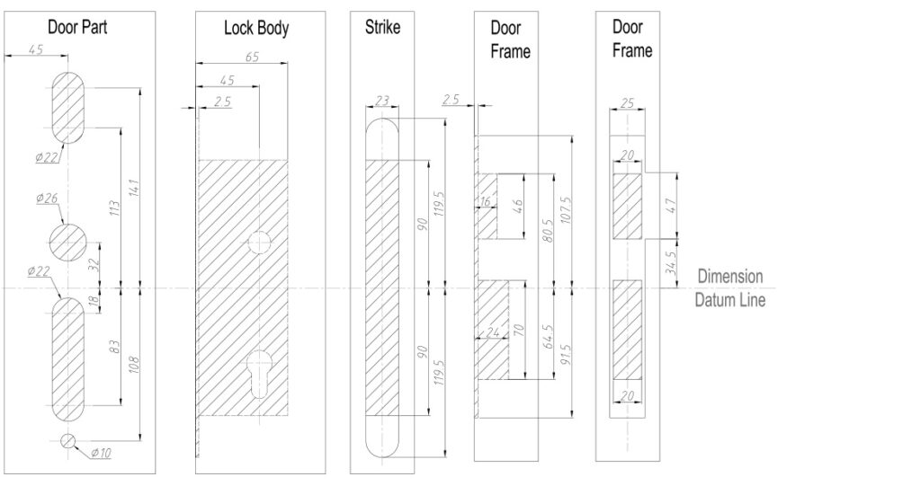 2.Centerline of lock body is the dimension datum line.